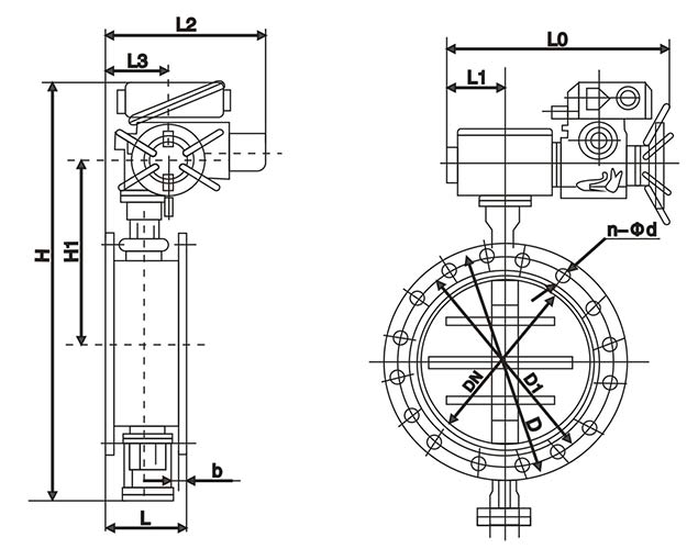 d941w electric ventilation butterfly valve main dimensions
