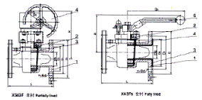 1. valve body 2. valve cover 3. plug 4. worm gear 1. valve body 2. valve cover 3. body lining 4. plug 5. main dimensions of the handle