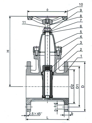 | 6 | valve stem | stainless steel | 13 | handwheel | cast iron |