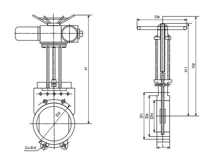 pz573x bevel gear slurry valve main shape and connection dimension