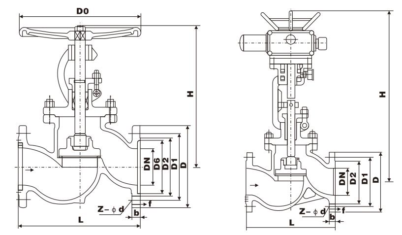 j41w stainless steel globe valve 16.0mpa the main connection size and weight: